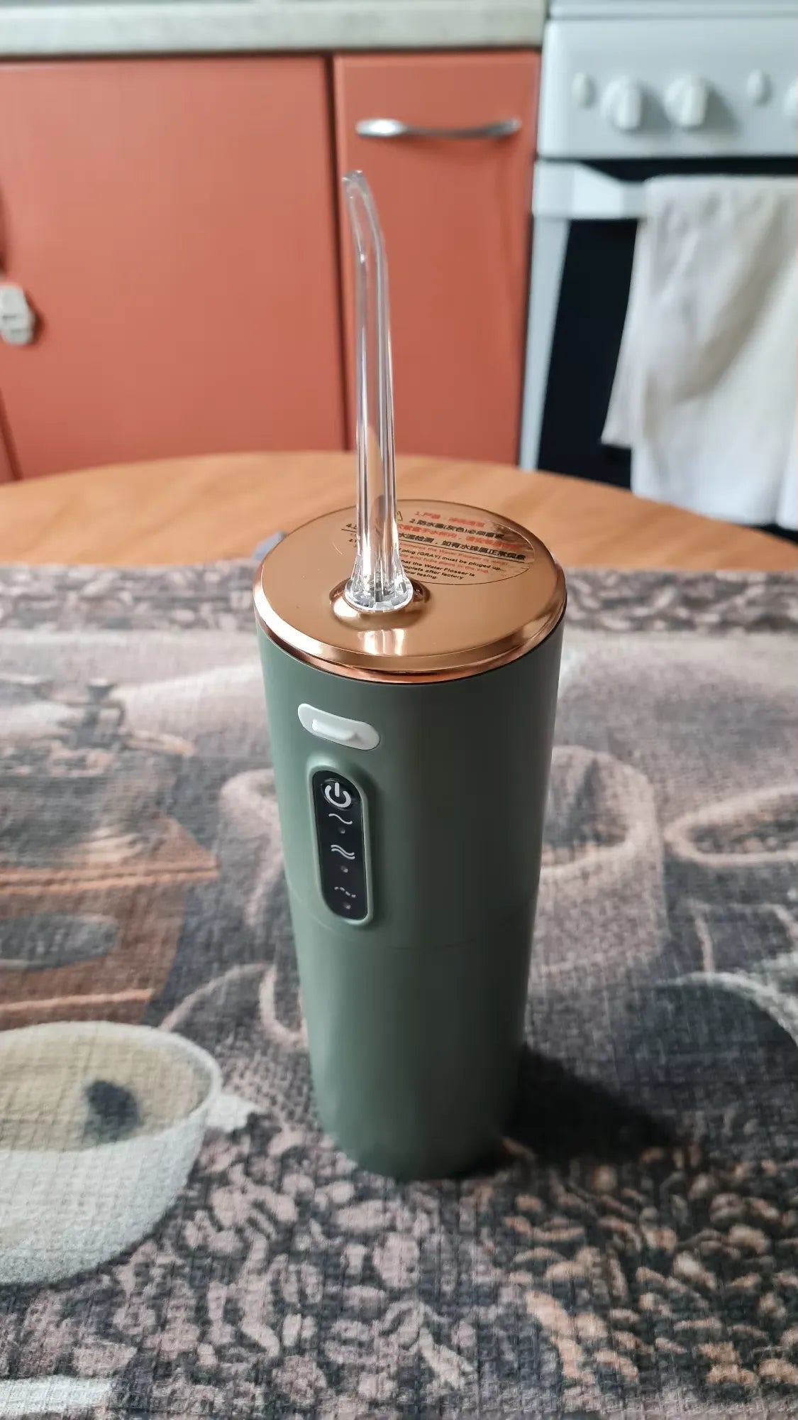 "WOW! This water flosser changed my dental routine! Super easy to use and my teeth have never felt so clean.💯 Battery life is lit and it fits right in my travel bag. Never going back to regular floss again!"